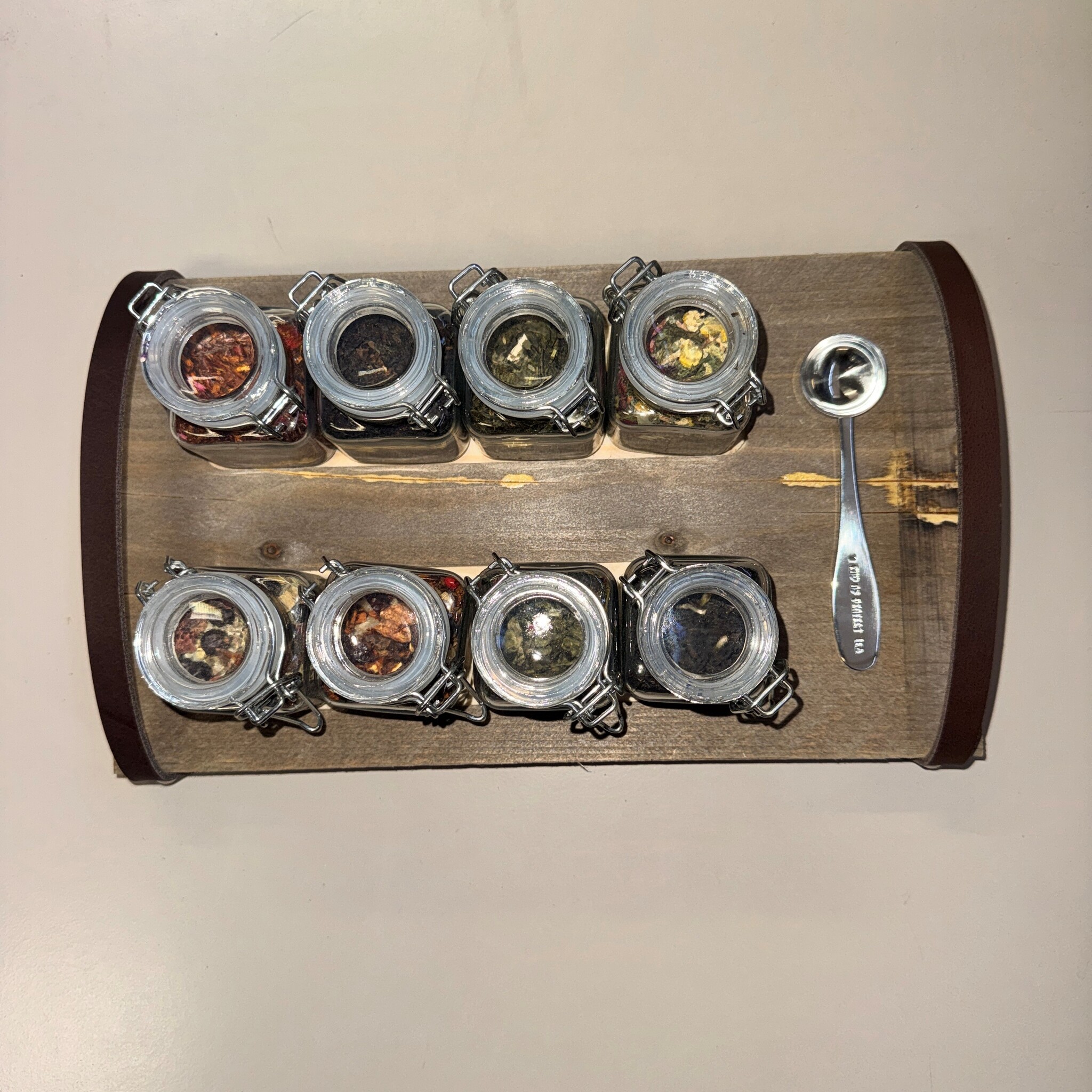 B-keuze theeplank van steigerhout met weckpotjes