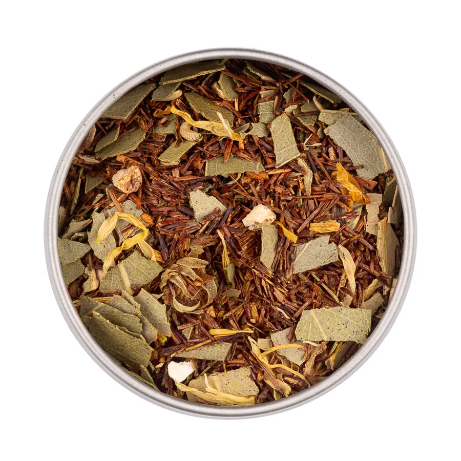 Ingrediënten: rooibos, eucalyptusblad, zeste van sinaasappel, sinaasappelolie, goudsbloem, limoen olie