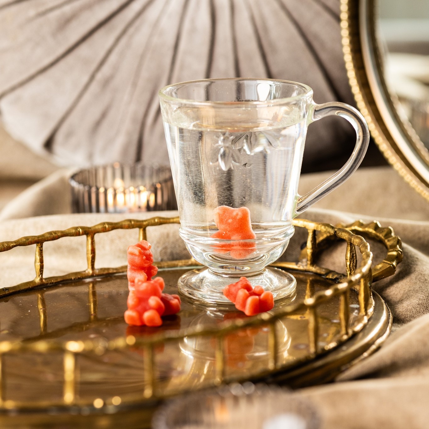 Deze vrolijke thee beertjes met aardbei-smaak kun je oplossen in heet water voor een heerlijke vruchtenthee, maar je kan ze ook gewoon lekker opeten als een thee snoepje. Yum! In een zakje zit 100 gram, dat zijn 20 beertjes.