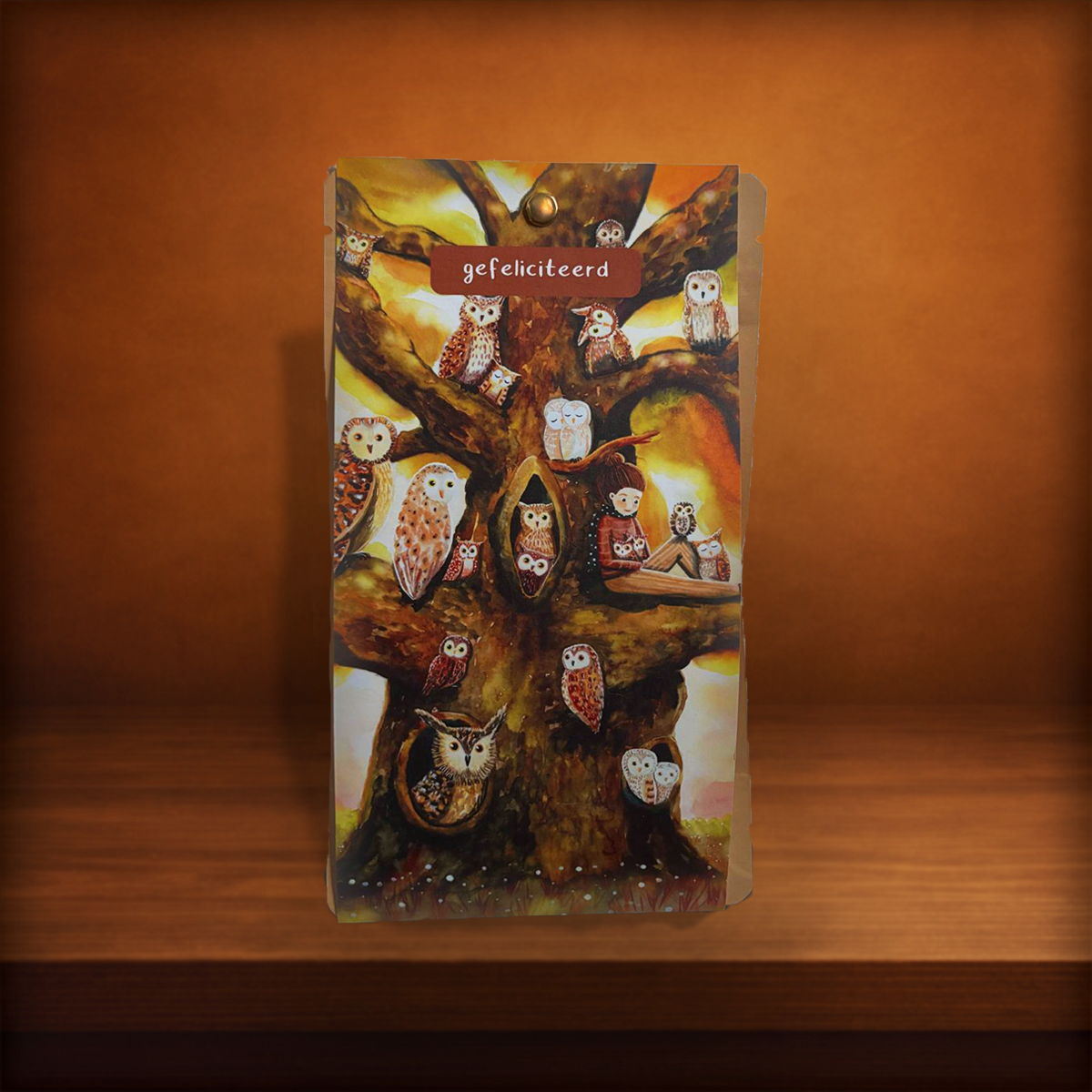 Thee kaart "Gefeliciteerd" - uilenboom
