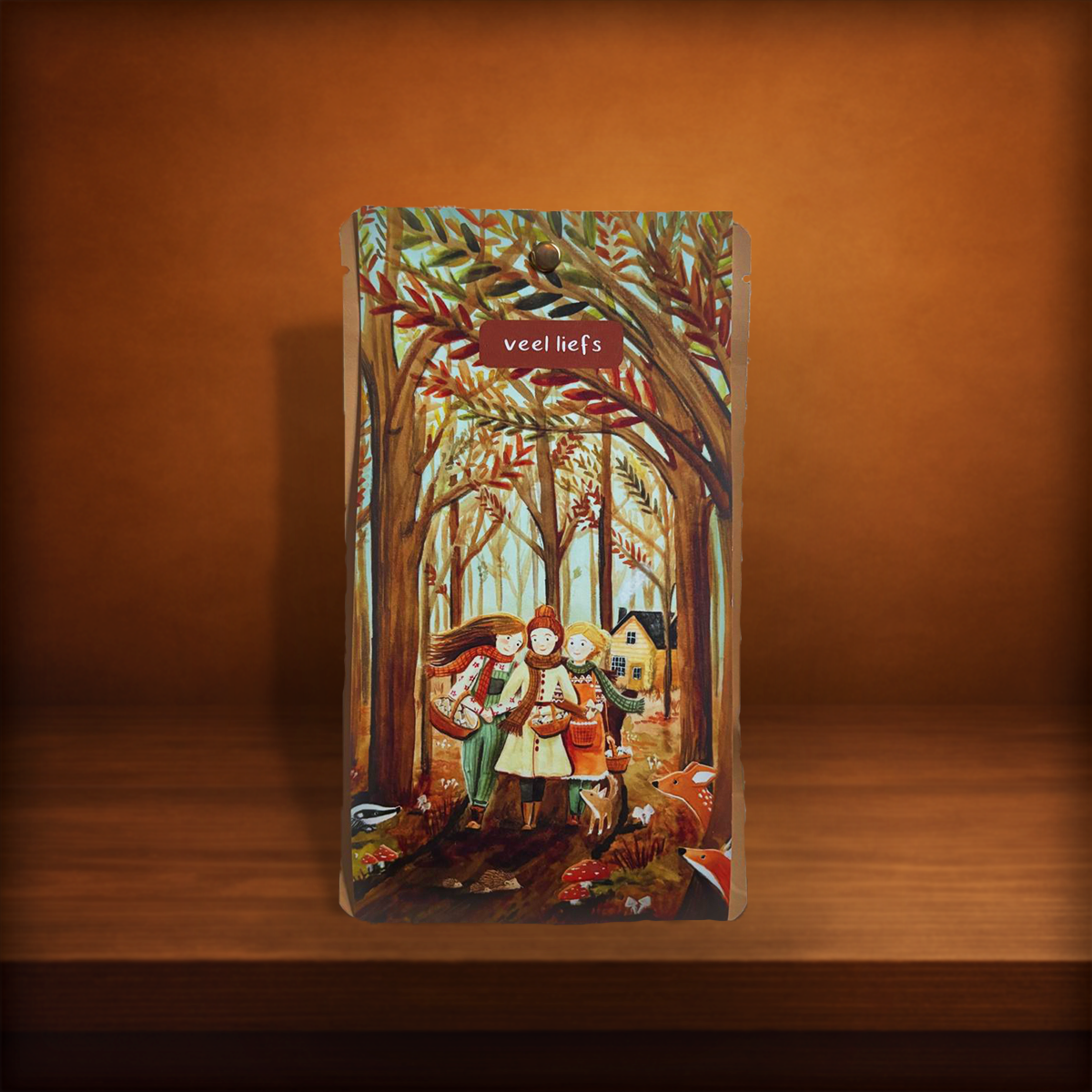 Verpakt in een kraftzakje met een liefdevol geïllustreerd label van Esther Bennink, ideaal om cadeau te doen.