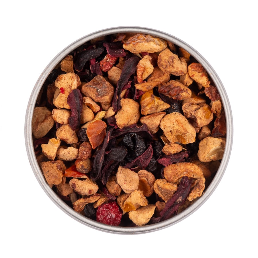 Ingrediënten: appel, hibiscus, vlierbessen, zwarte bessen, ananas, natuurlijk fruit aroma, rode bessen, aardbeistukjes